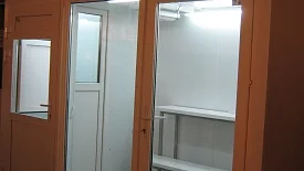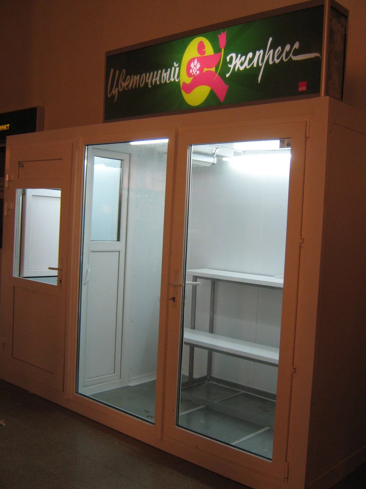 Холодильная камера для цветов с рабочим местом продавца.