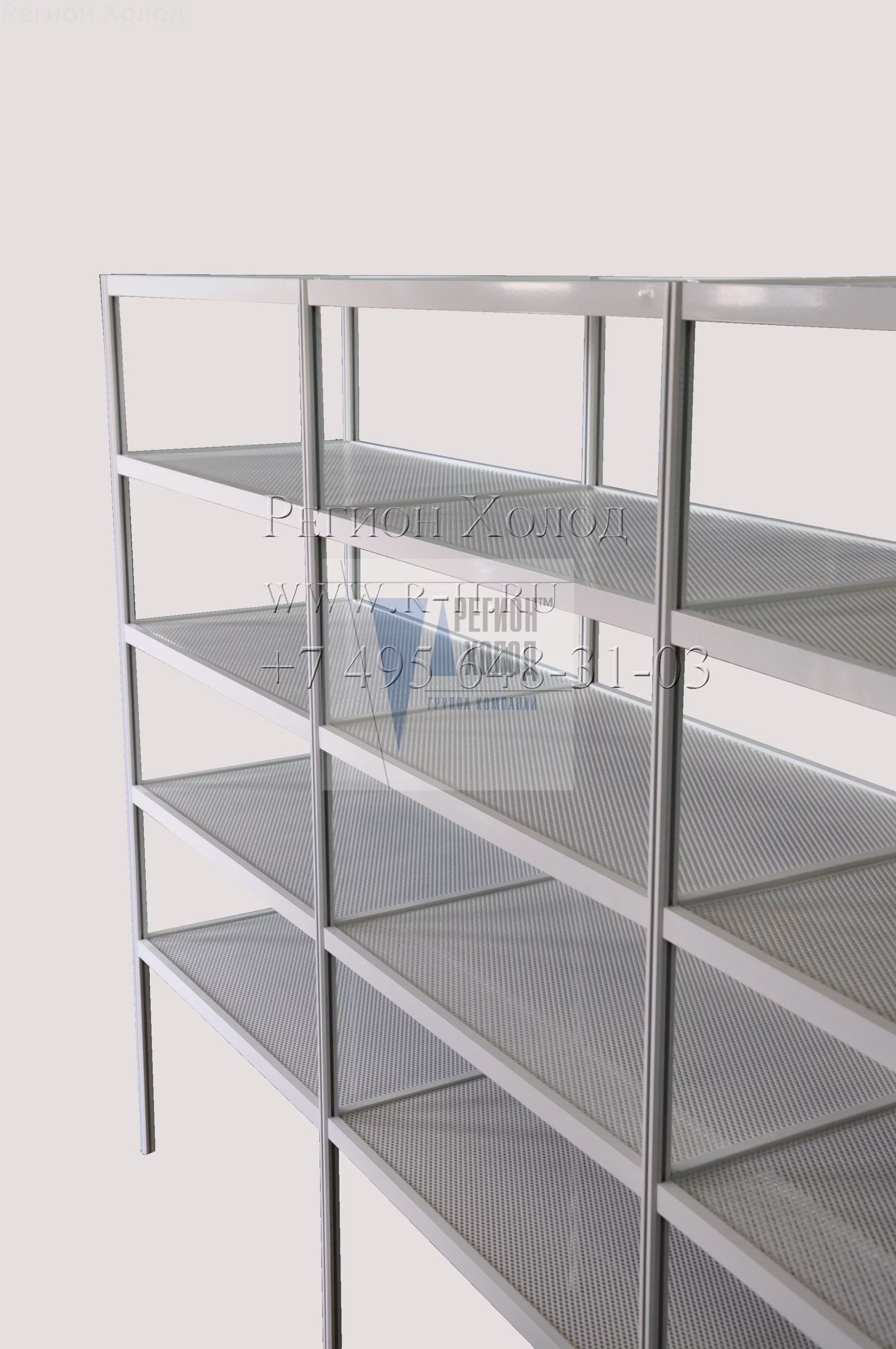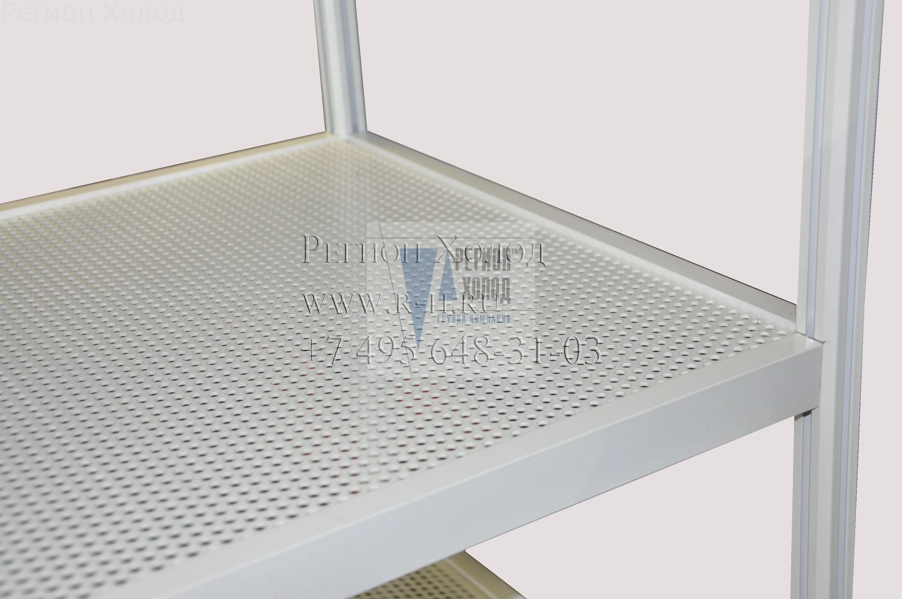 Стеллаж изготовлен из алюминиевого профиля, полки стеллажа для пива сделаны перфорированными, для лучшего воздухообмена.
