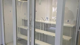Два стеклянных фасада.Для создания и поддержания температуры в диапазоне +2...+10 установлена сплит-система "Регион Холод" потолочного исполнения.