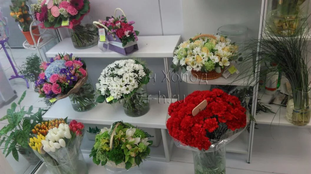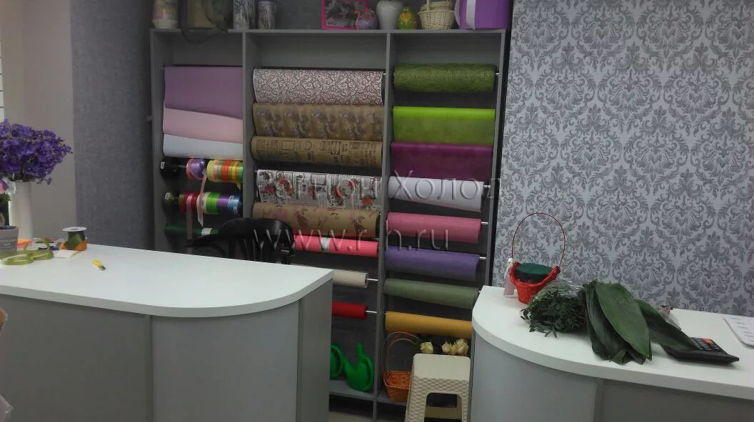 Комплексная поставка в цветочный магазин.Установлена холодильная камера для цветов с ламинированным фасадом.