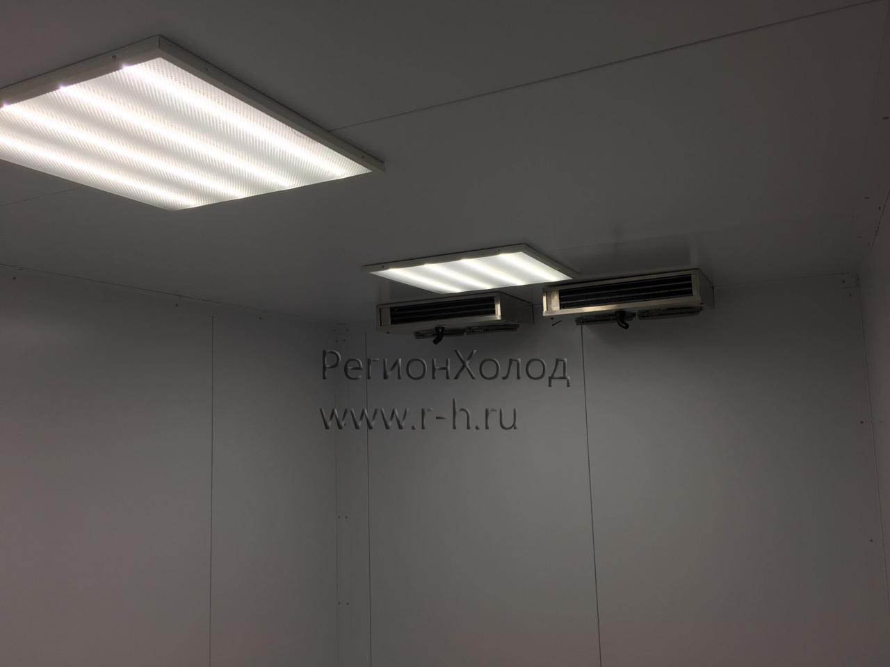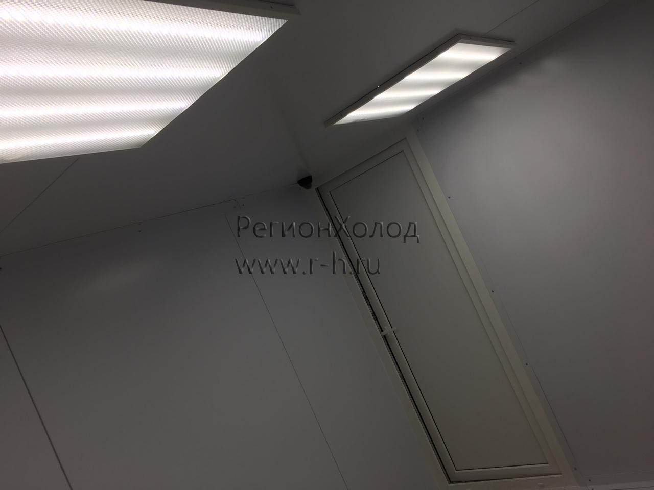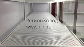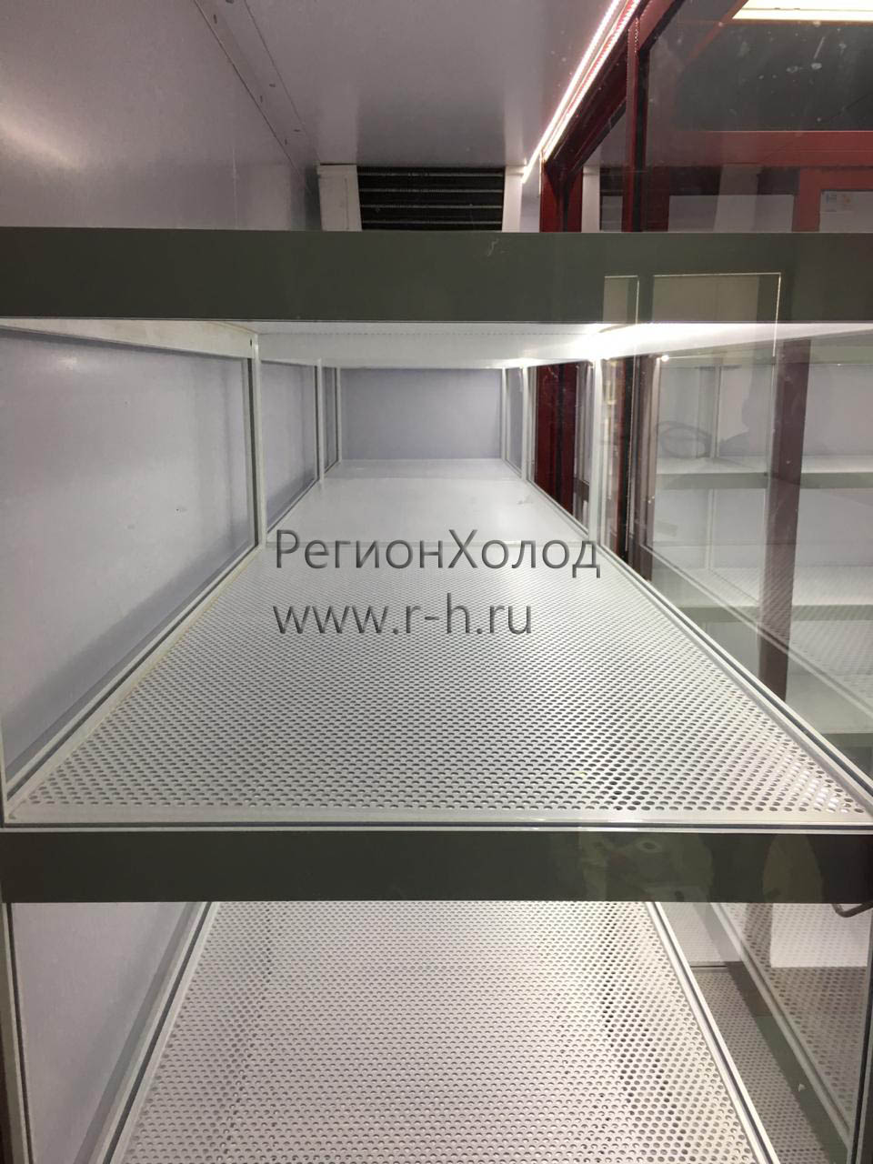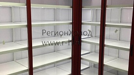 Внутри установлена стеллажная система из алюминиевого профиля.