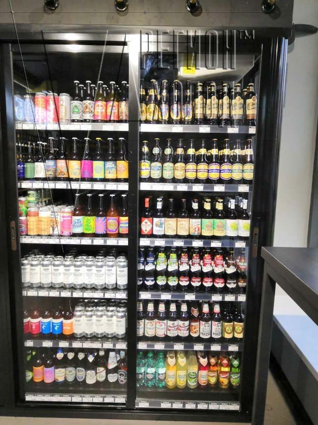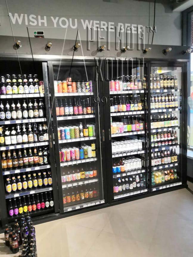 Холодильная витрина для пива.На фасаде раздвижные двери купе.