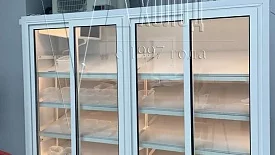 Холодильный шкаф с раздвижными дверьми-купе.Профиль дверей алюминиевый.