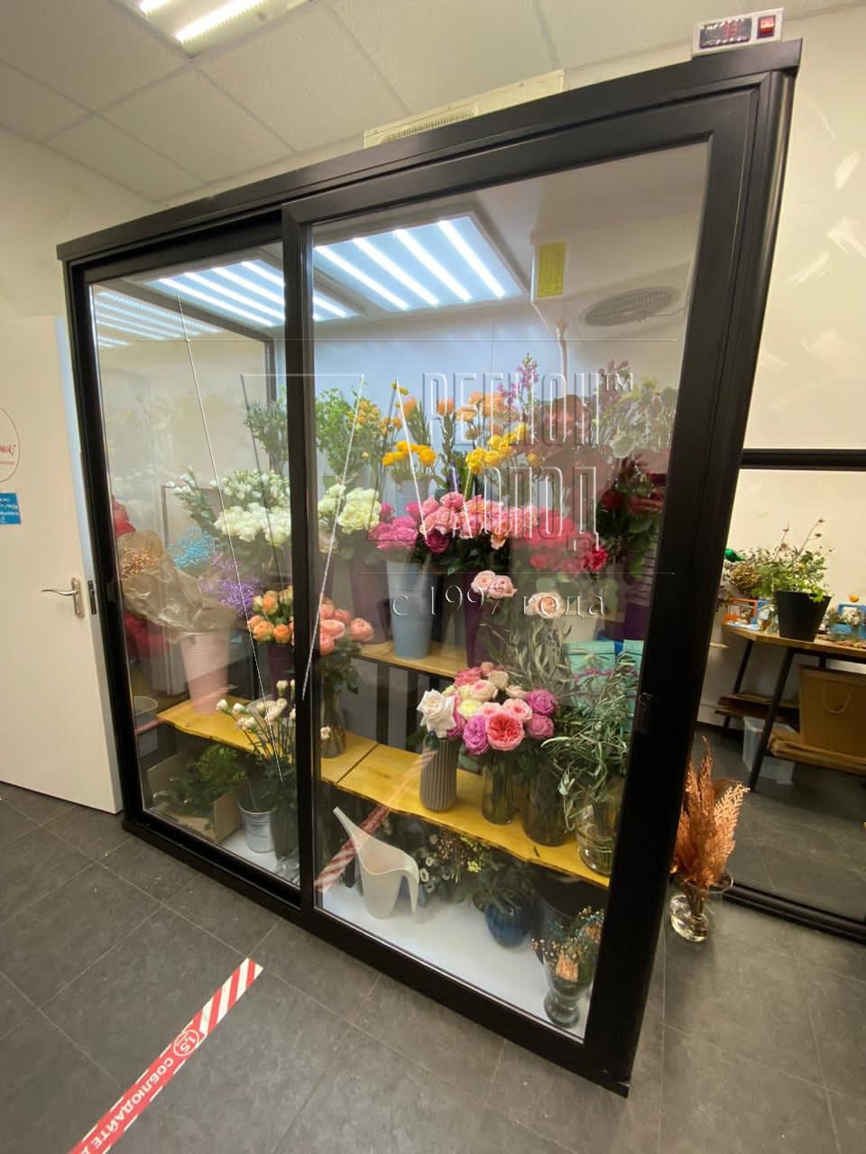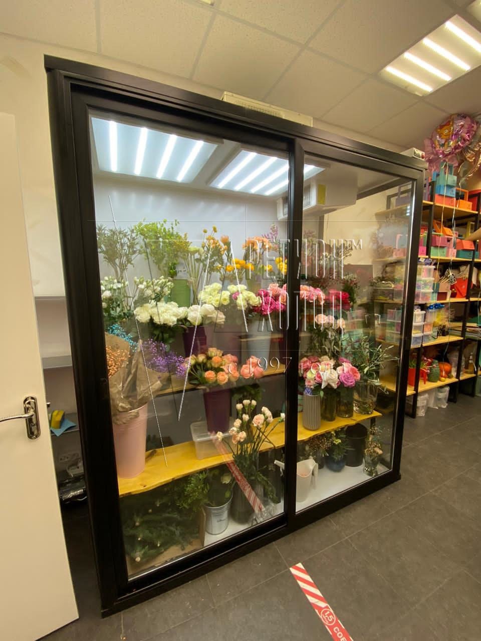 Холодильная витрина для цветов.Фасады изготовлены из алюминиевого профиля.