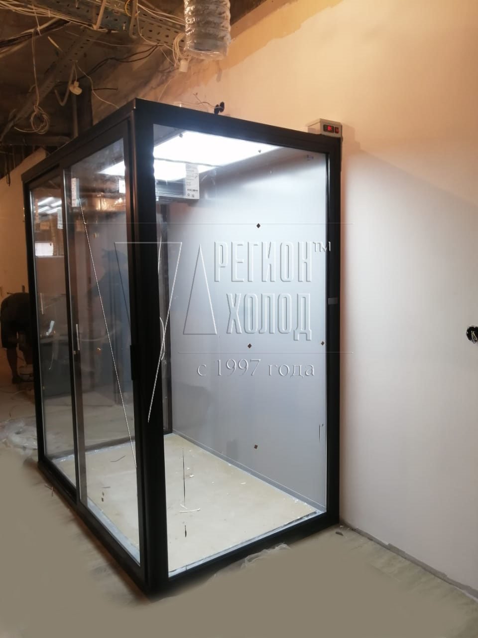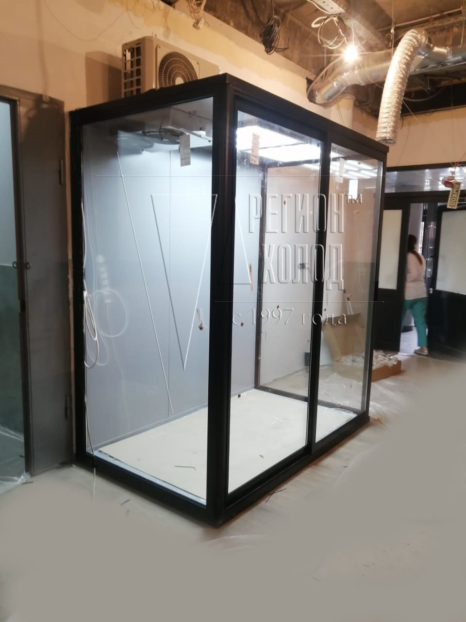 Цветочная холодильная камера.Двери раздвижные, наполнение стеклопакеты 16 мм.