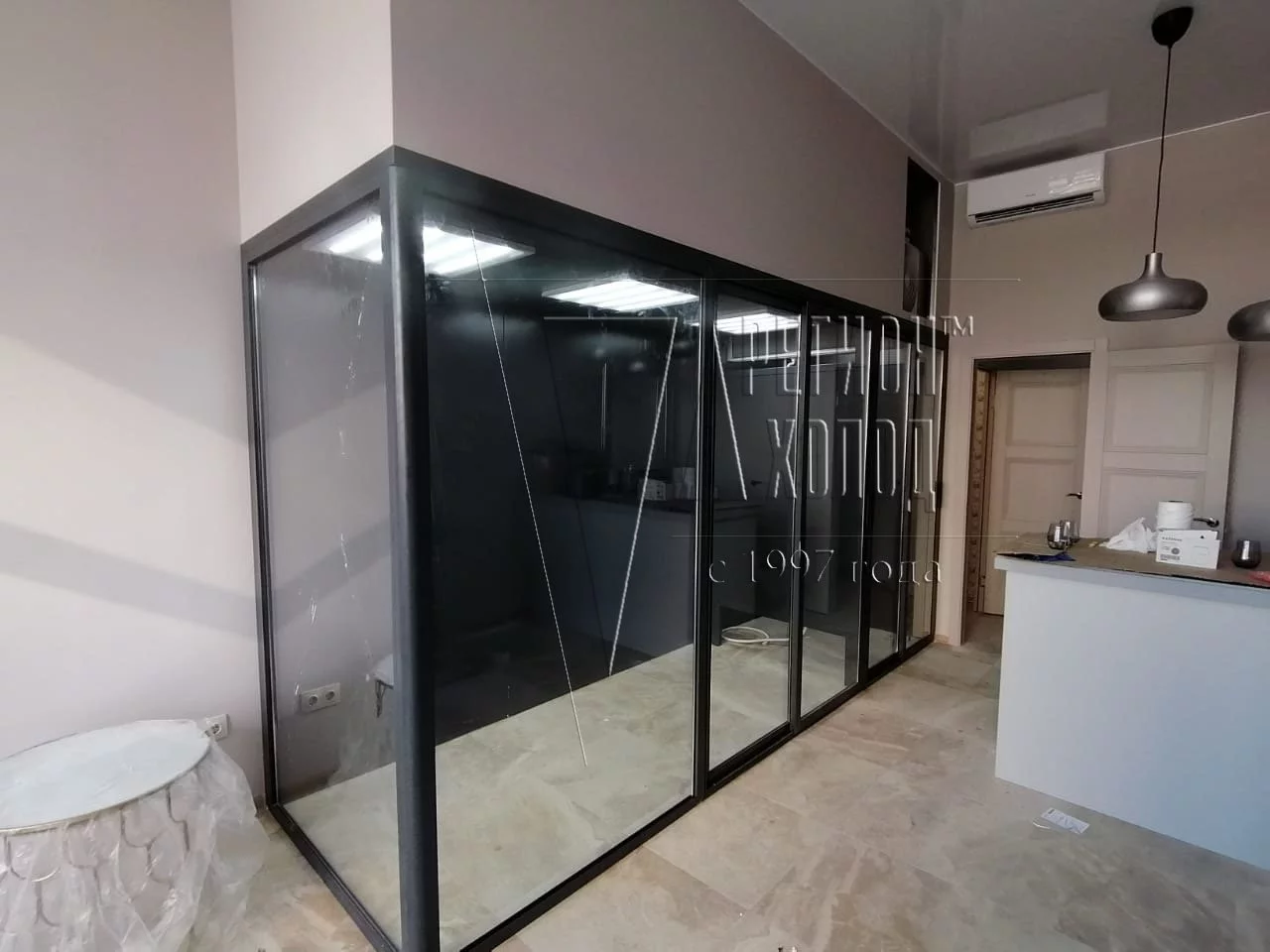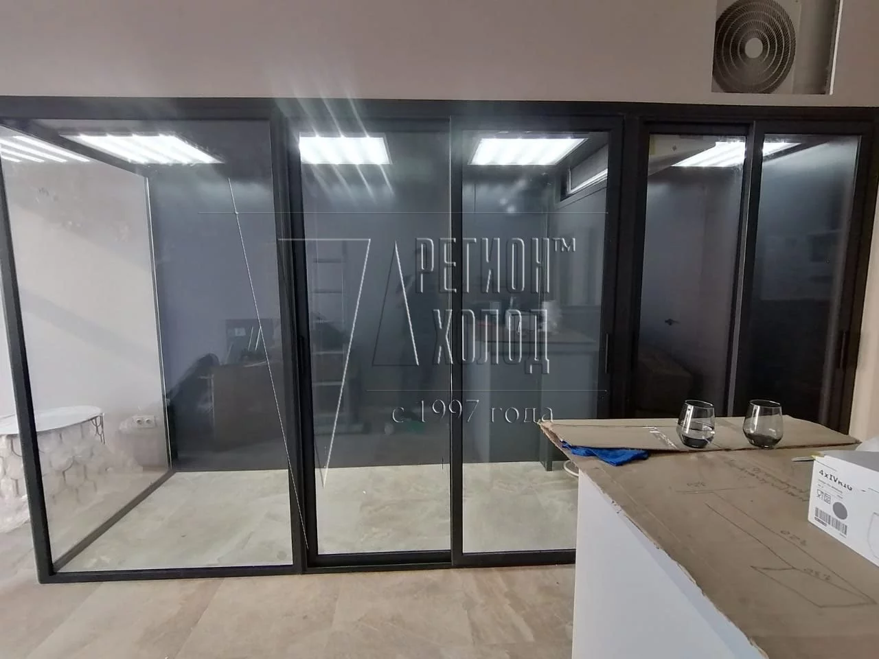 Холодильник для хранения и экспозиции цветов.Камера разделена внутренней перегородкой на зоны хранения и витрину.