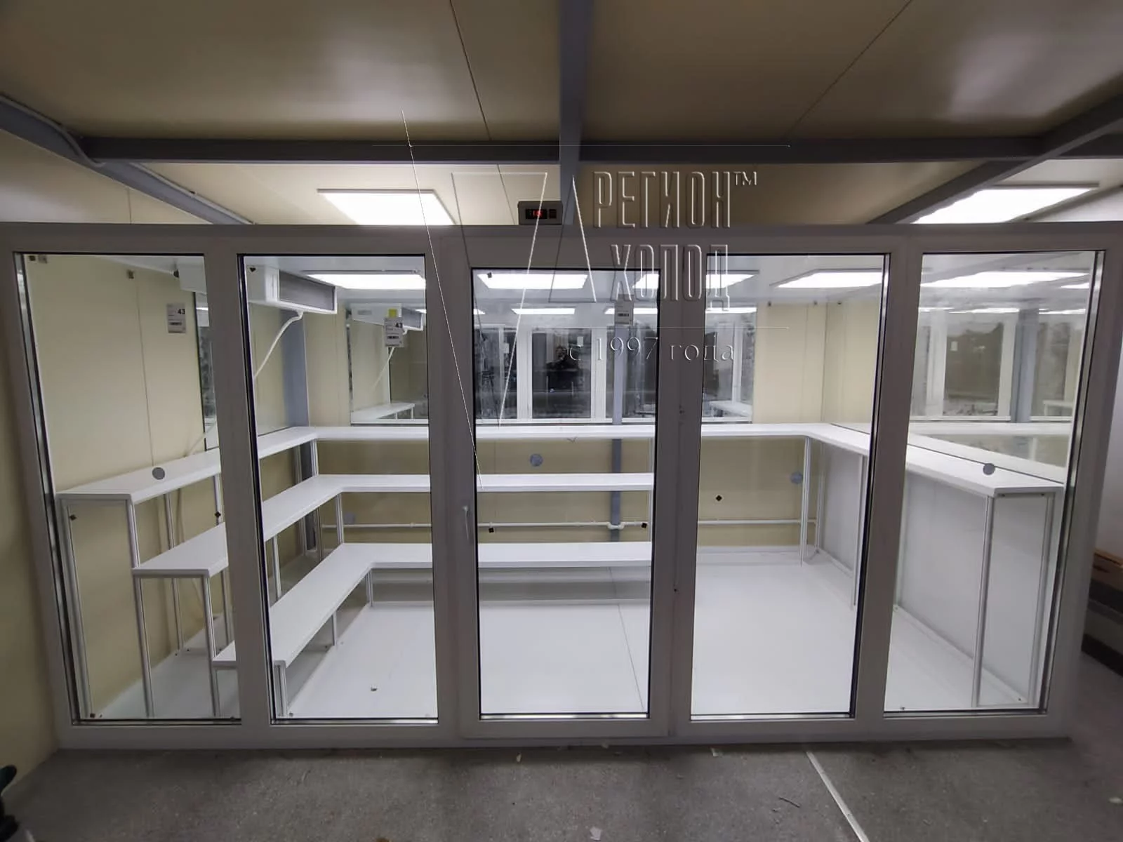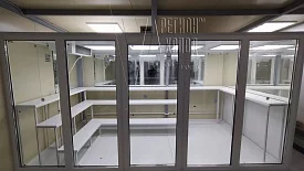Стены и потолок - сэндвич панели, с наполнением ППУ высокой плотности.