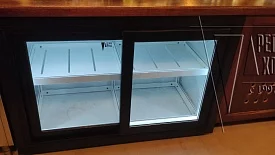 Горизонтальный холодильник инсталлирован под барную стойку.