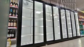 Внутри холодильника установлена стеллажная система из алюминиевого профиля. Высота полок регулируется.
