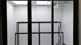 Установлен стеллаж ФлолраЛайн. Цвет каркаса чёрный.