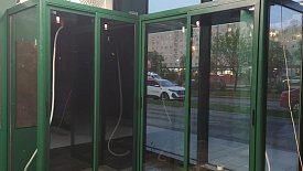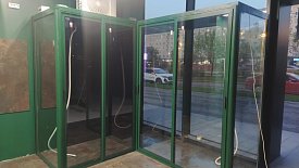 Угловая холодильная камера для цветов.Фасады из алюминиевого профиля, окрашены в цвет по RAL.